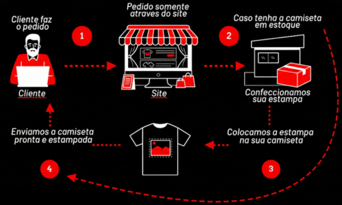 Verificação de Estoque: Se a camiseta com a estampa solicitada já estiver em estoque, o pedido segue direto para o envio. Caso contrário, inicia-se a produção.